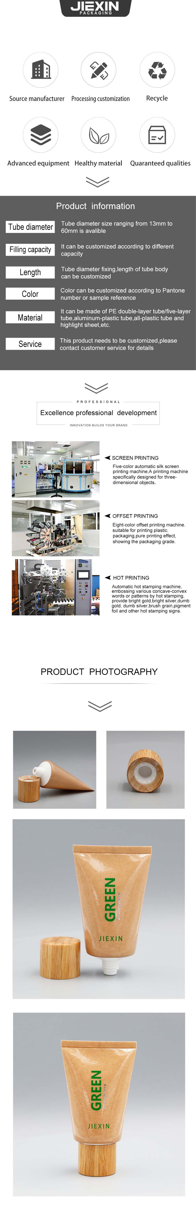 D38 Kraft paper Tube For Facial Cleanser with bamboo cap